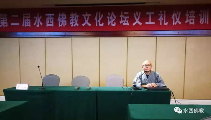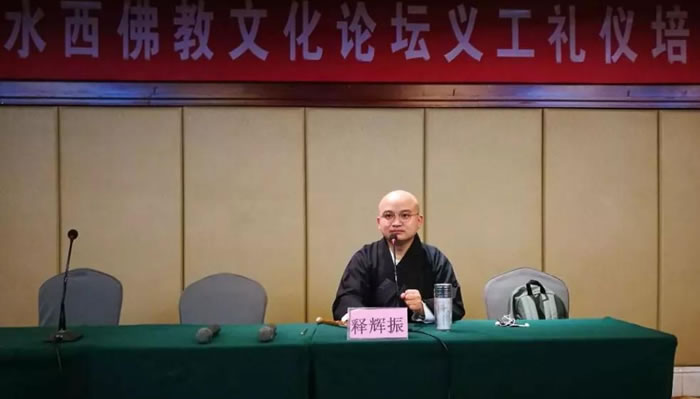 第二届水西佛教文化论坛与会的嘉宾不仅有来自全国各地高校和研究机构的专家学者,还有佛教界的高僧大德。为了如理如法的做好服务工作,礼仪培训请来了宣城市佛教协会副会长、宣城宛陵小九华住持辉振法师,为义工学员们讲解佛教仪轨以及佛教徒如何做一名合格的义工,辉振法师深入浅出、引经据典的讲解佛门礼仪、佛门礼法,轻言细语、细致入微的表述赢得义工学员们阵阵掌声。