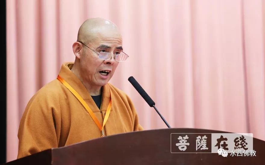 智文法师作安徽省佛教协会第三届理事会工作报告(图片来源:菩萨在线 摄影:李蕴雨)