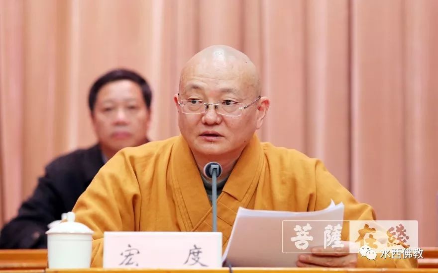 中国佛教协会副秘书长宏度法师宣读《中国佛教协会贺电》。