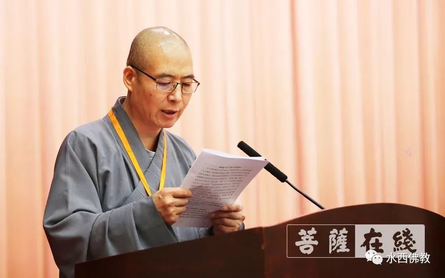 宏度法师宣读《中国佛教协会贺电》(图片来源:菩萨在线 摄影:李蕴雨)
