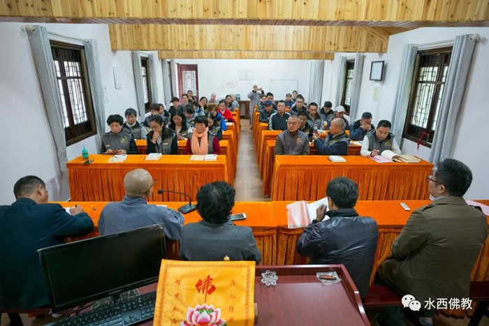出席开班典礼有泾县政协副主席丁旭健,水西佛教文化研究所所长、南京大学教授杨维中,泾县民宗局局长陈学新、水西书院院长宗行法师,扬州大学教授刘奉祯及第二届正见研修班全体学员。