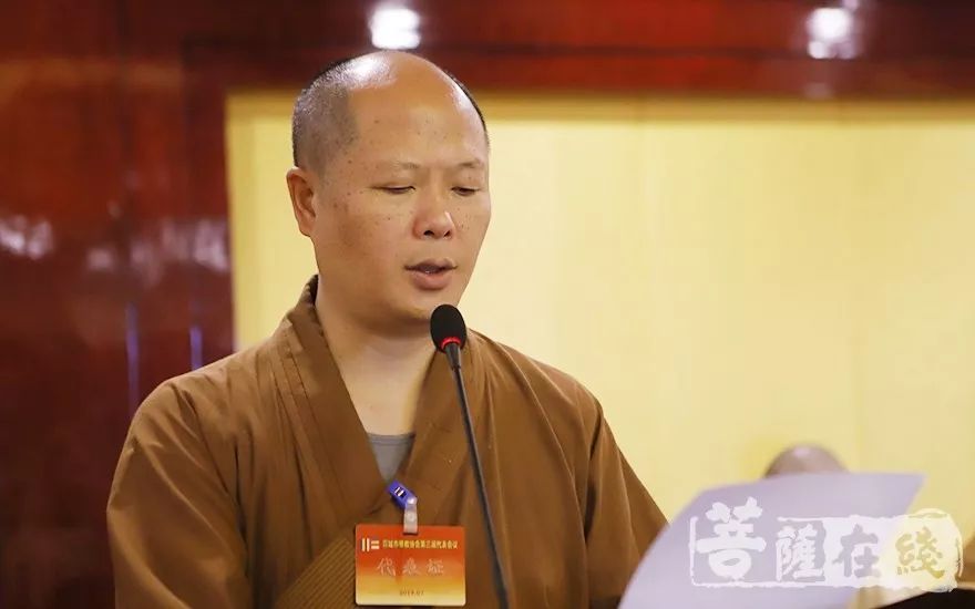 能元法师宣读宣城市佛教协会第三届理事会理事候选人建议名单(摄影:王颖)
