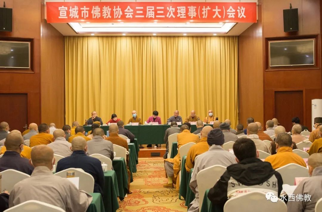 2021年3月26日,宣城市佛教协会三届三次理事扩大会议暨年度述职评议会议在宣城宾馆召开。市佛教协会会长宗行法师,常务副会长果通法师,副会长兼秘书长辉振法师及副会长妙幢法师、文慧法师,全体理事,全市佛教场所负责人和信众代表等参加了会议。中共宣城市委统战部(市民宗局)副部长(局长)郭梅香、市委统战部宗教科科长吴婷等莅会指导,宣城市七县(市、区)委统战部有关负责人列席会议。