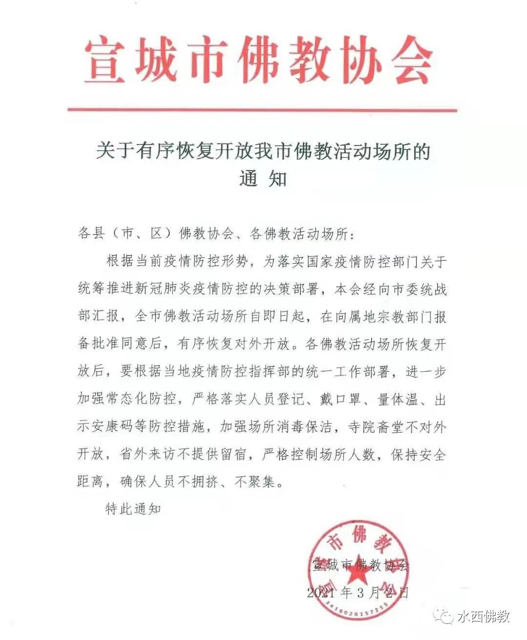 宝胜禅寺 关于有序恢复开放的通知