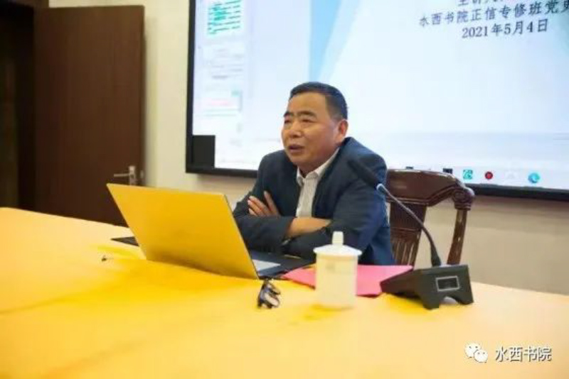 5月4日下午,应水西书院邀请,泾县县委统战部副部长、宗教局局长陈学新为大家做了“从百年党史中汲取奋进的力量”主题讲座。晚上,书院邀请国家二级心理咨询师凌慧老师,以“系统智慧与幸福人生”为主题,就家庭系统关系等问题向大家介绍了相关理论,分享了她的心得,并选取个案进行现场分析。