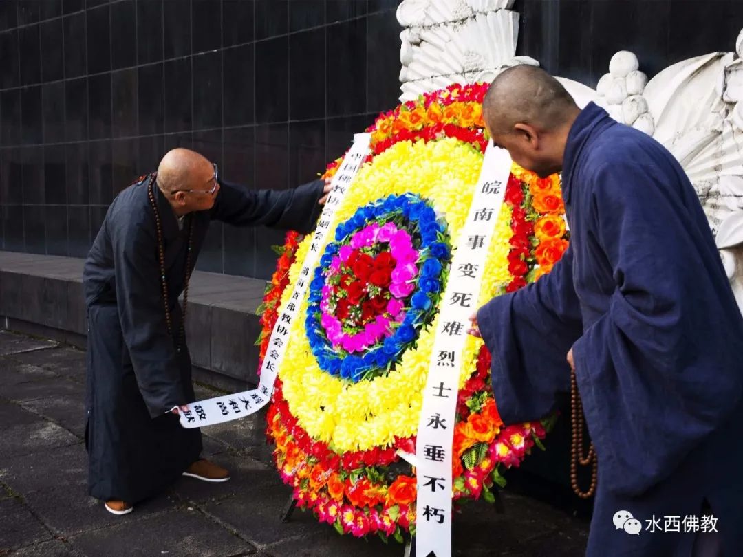 10月29日,中国佛教协会副会长、湖南省佛教协会会长圣辉长老,天台山宝华禅寺果宁法师瞻仰安徽泾县皖南事变烈士陵园并敬献花篮。安徽省佛教协会副会长、宣城市佛教协会会长、宣城市宝胜禅寺住持宗行法师,安徽省佛协副秘书长、宣城市佛教协会副会长兼秘书长、宣城宛陵小九华住持辉振法师等陪同。