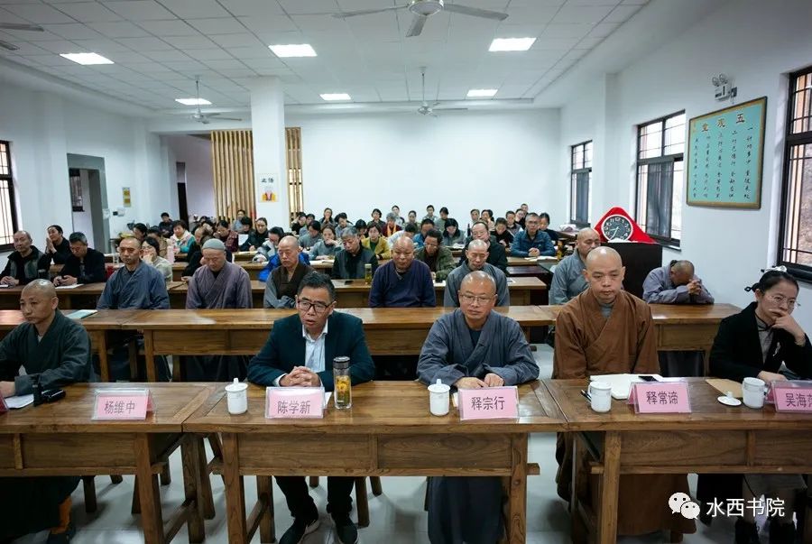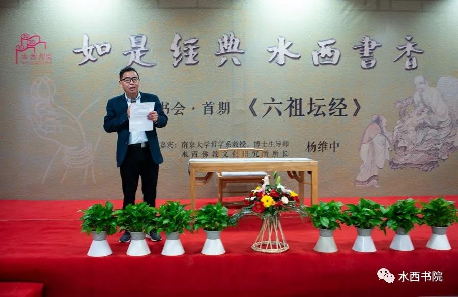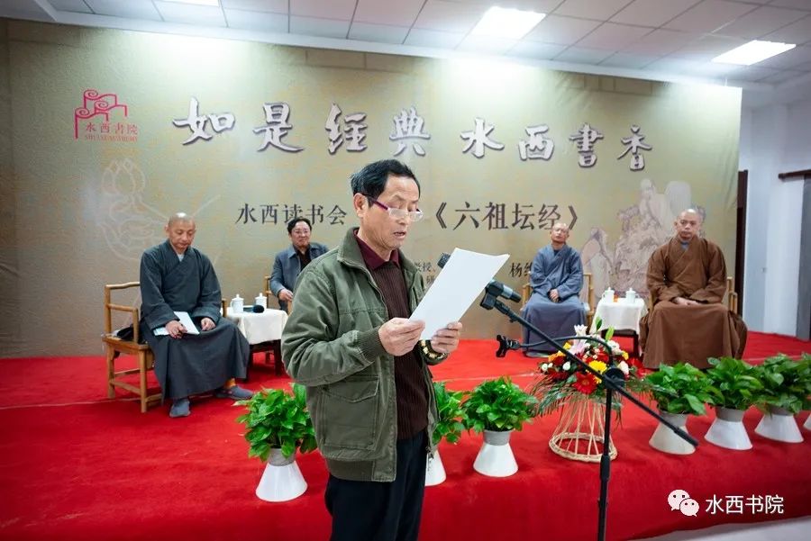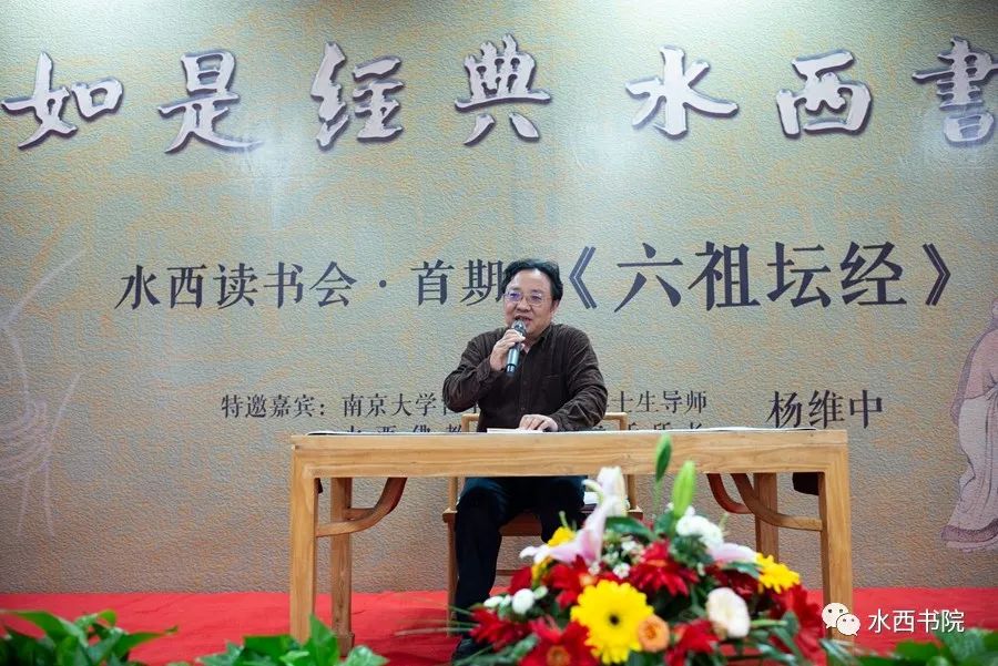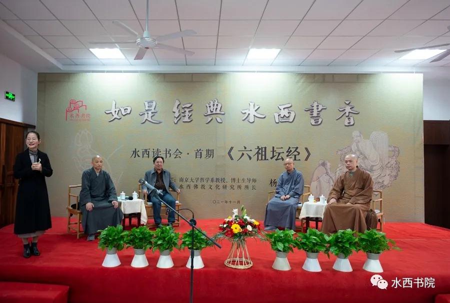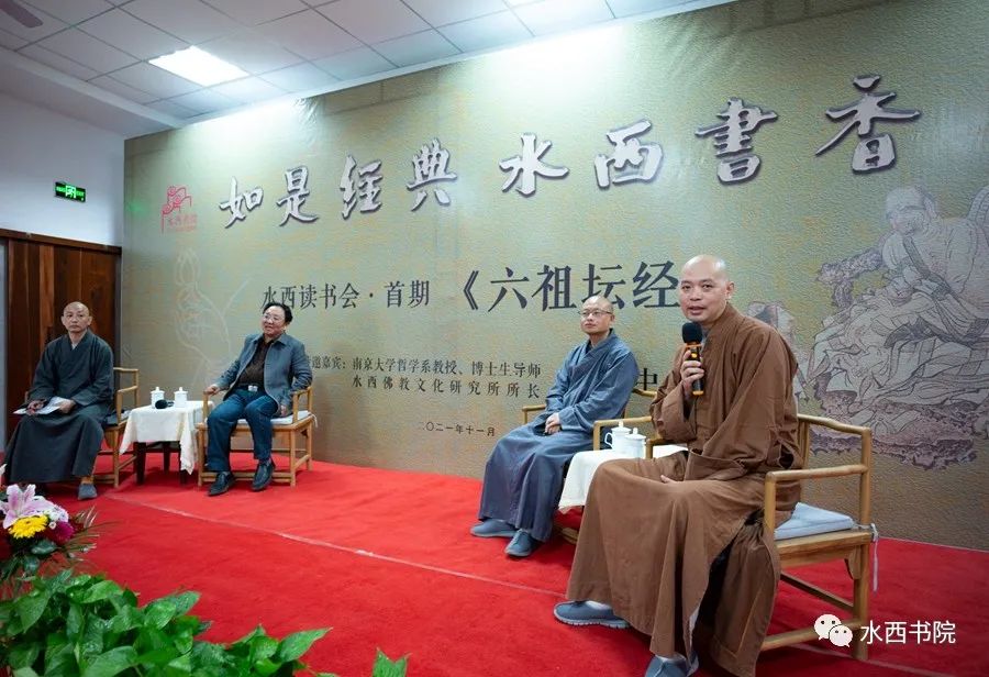 2021年11月6日上午,“如是经典,水西书香”读书会之首期《六祖坛经》导读,在泾县水西书院如期举行。本期读书会延请南京大学哲学系教授、博士生导师、水西佛教文化研究所所长杨维中先生指导大家阅读《六祖坛经》,宣城双塘净业寺住持常谛法师、宝胜禅寺住持宗行法师、水西书院副院长亲航法师等人参与现场答疑,泾县县委统战部副部长、县民宗局局长陈学新全程参与,并予以指导。