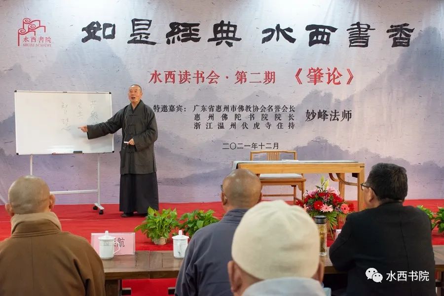 第三期水西读书会礼请广东省惠州市佛教协会名誉会长、惠州佛陀书院院长、浙江温州伏虎寺住持妙峰法师作为特邀嘉宾,指导阅读《维摩诘经》。