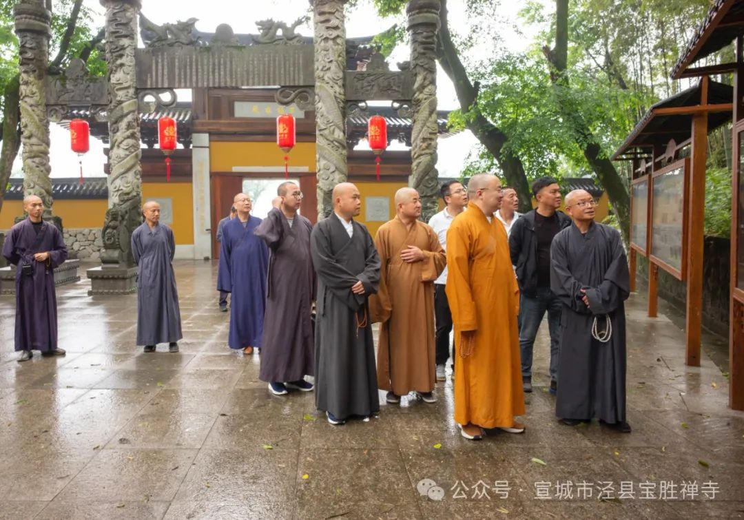 2025年5月16日,山东省佛教协会副会长、青岛市佛教协会会长、青岛佛学院常务副院长妙智法师率青岛市佛教协会代表团参访宝胜禅寺。宝胜禅寺住持宗行法师陪同代表团参礼黄檗希运祖师塔及寺院主要建筑,并在善法堂举行座谈。双方围绕寺院管理、道场文化建设、崇俭戒奢、从严治教及佛教中国化方向建设等议题展开深入交流。青岛市委统战部相关部门负责人,泾县县委统战部及泾县佛教协会领导共同参加本次活动。