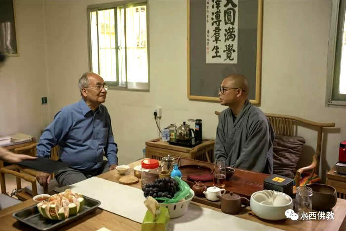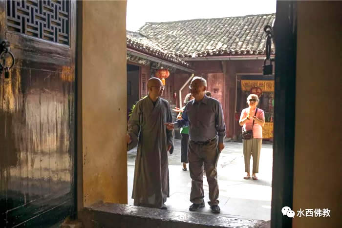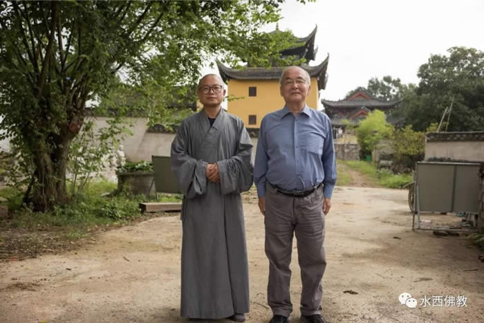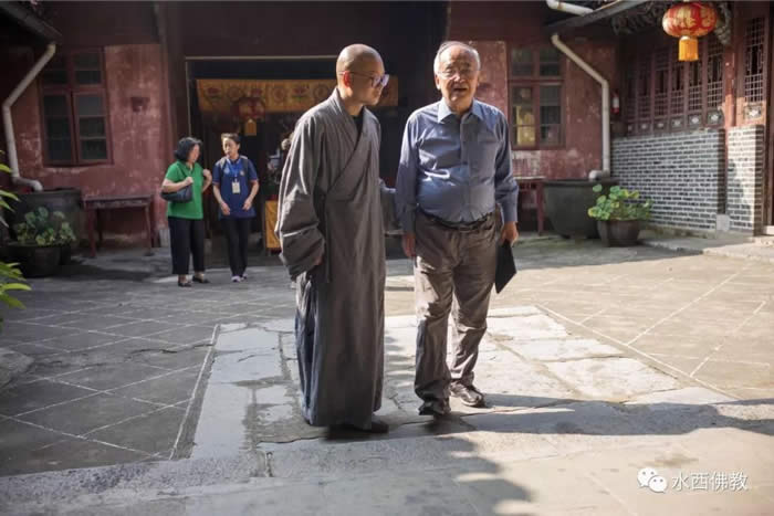 2018年8月20日,南开大学文学院中国语言文学系孙昌武教授参加完第二届水西佛教论坛闭幕式,在宝胜禅寺住持宗行法师的陪同下,风尘仆仆来到水西宝胜禅寺参访。