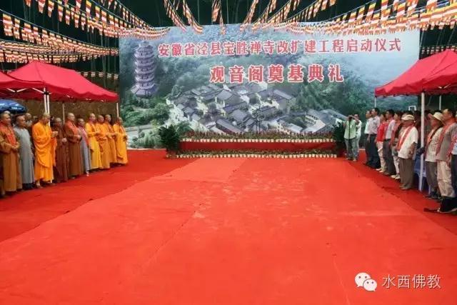 2016年8月21日(农历7月19日),龙天欢喜、祥云满天,梵乐环绕、佛光普照。上午九时,千年古寺——宝胜禅寺隆重举行观音阁奠基庆典法会,标示着宝胜禅寺改扩建工程拉开序幕。四面高僧、八方善信千余人齐聚安徽省泾县宝胜禅寺,随喜庆典法会,共同祈愿世界和平,国运昌盛,社会和谐,人民安乐。