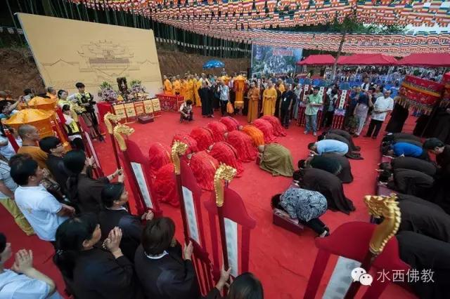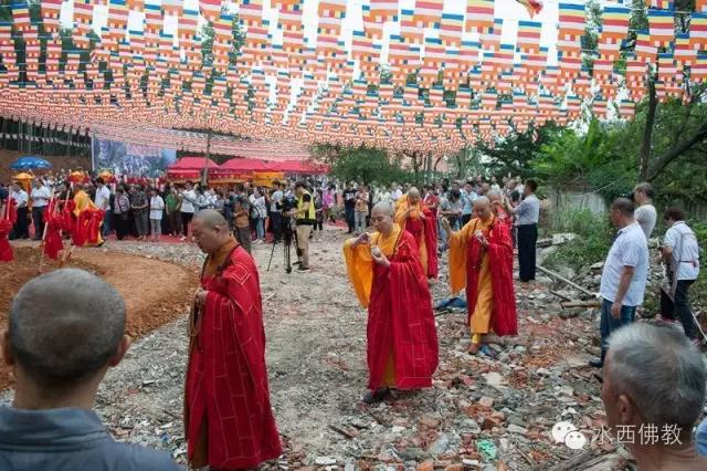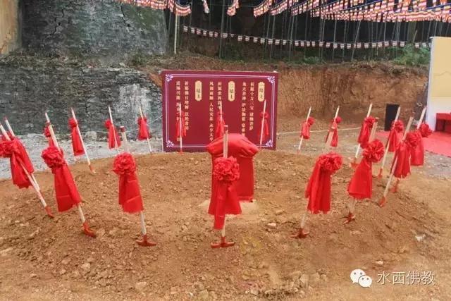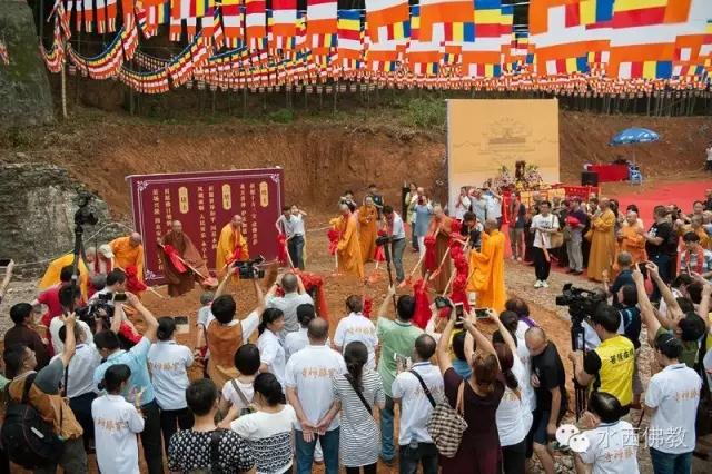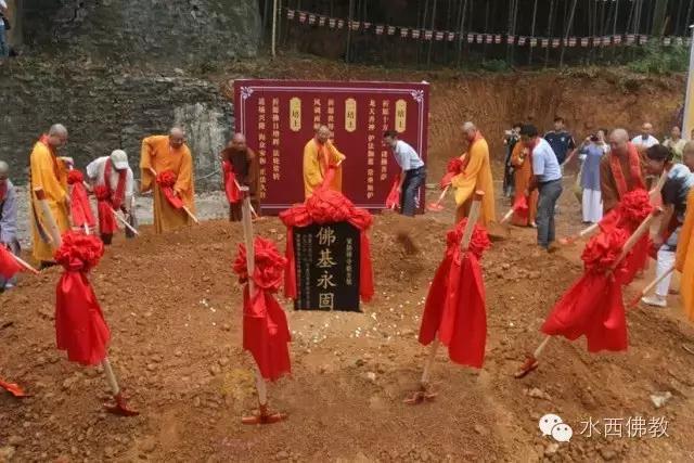 领导嘉宾、大德法师和专家学者共同为此次奠基挥锹培土