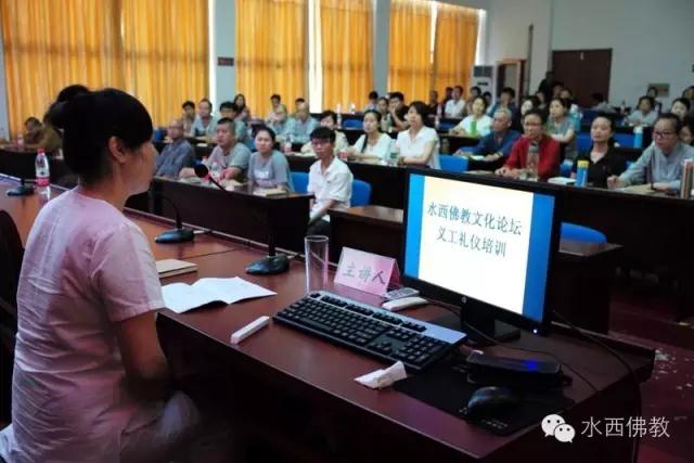 为即将举行的「水西佛教文化论坛」能取得圆满的成功、为更好的服务本次论坛,泾县宝胜禅寺于2016年8月14日举办了义工礼仪培训,来自芜湖、马鞍山、宣城以及泾县本地的近八十多名义工集结在泾县县委党校小礼堂接受了严格的培训。