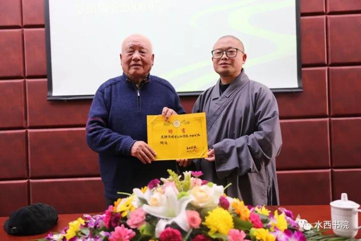 讲座结束后,水西书院院长宗行法师代表水西书院,向杨曾文教授发出诚挚的邀请,聘请他为水西书院荣誉顾问。(图片摄影:鲁惠敏)