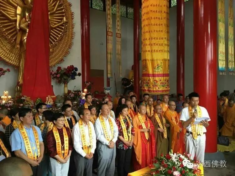 出席开光典礼的领导有: 黄山市政协副主席杨震先生!黄山市名族宗教局局长吴建平先生,黄山区政府副区长曹恒凤女士,黄山区政协副主席杜可林先生,黄山区宗教局局长艾明义,亳州市谯城区名族宗教局局长刘红旗先生,屯溪区政协副主席戴玉英女士,黄山区区委统战部常务副部长杜春艳女士,安徽省佛协陈慧峰先生。