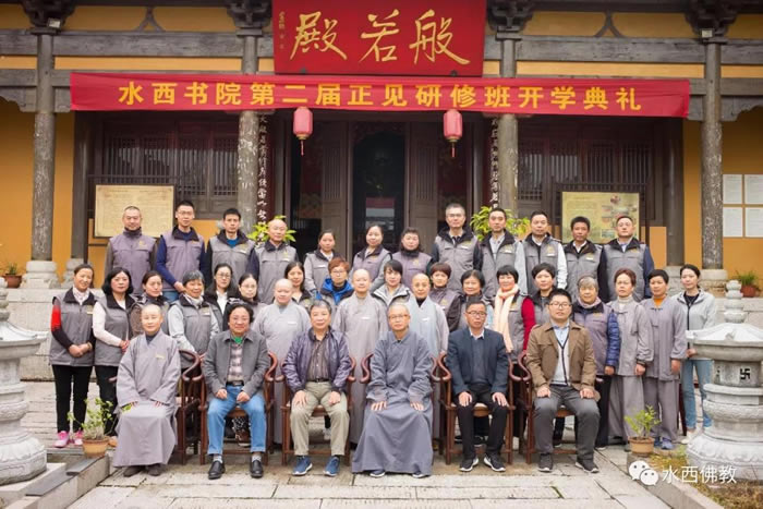 出席开班典礼有泾县政协副主席丁旭健,水西佛教文化研究所所长、南京大学教授杨维中,泾县民宗局局长陈学新、水西书院院长宗行法师,扬州大学教授刘奉祯及第二届正见研修班全体学员。