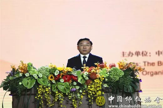 中共中央书记处书记、中央统战部部长尤权出席论坛开幕式并致辞。他说,希望佛教人士深入发掘佛教诸恶莫作、众善奉行、慈悲平等、中道和平等价值理念,为增进人类福祉、维护世界和平贡献智慧,为构建人类命运共同体、建设持久和平、普遍安全、共同繁荣、开放包容、清洁美丽的世界贡献力量。