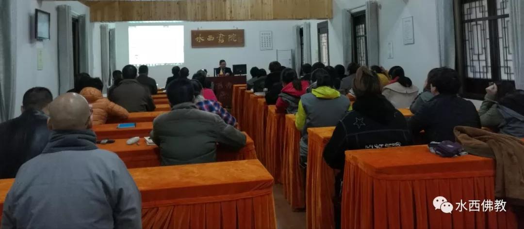 陈学新局长在授课当中,充分肯定了泾县宝胜禅寺(水西书院)长期以来认真贯彻党和国家宗教政策、坚持“文以载道、以文化人”,体现了水西佛教坚持中国化的弘法理念,希望泾县宝胜禅寺(水西书院)能成为激活善信的力量、启迪智慧的法门、点亮心灵的明珠和引导信众前行的灯塔,在习近平新时代中国特色社会主义思想的引领下,开启水西佛教中国化新篇章。