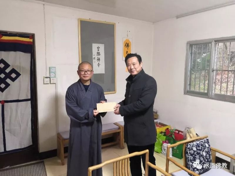 赵毅强部长分别看望慰问了宝胜禅寺87岁高僧释自德法师、泾县佛教协会会长释宗行法师等,为他们送去慰问金和新春的祝福。
